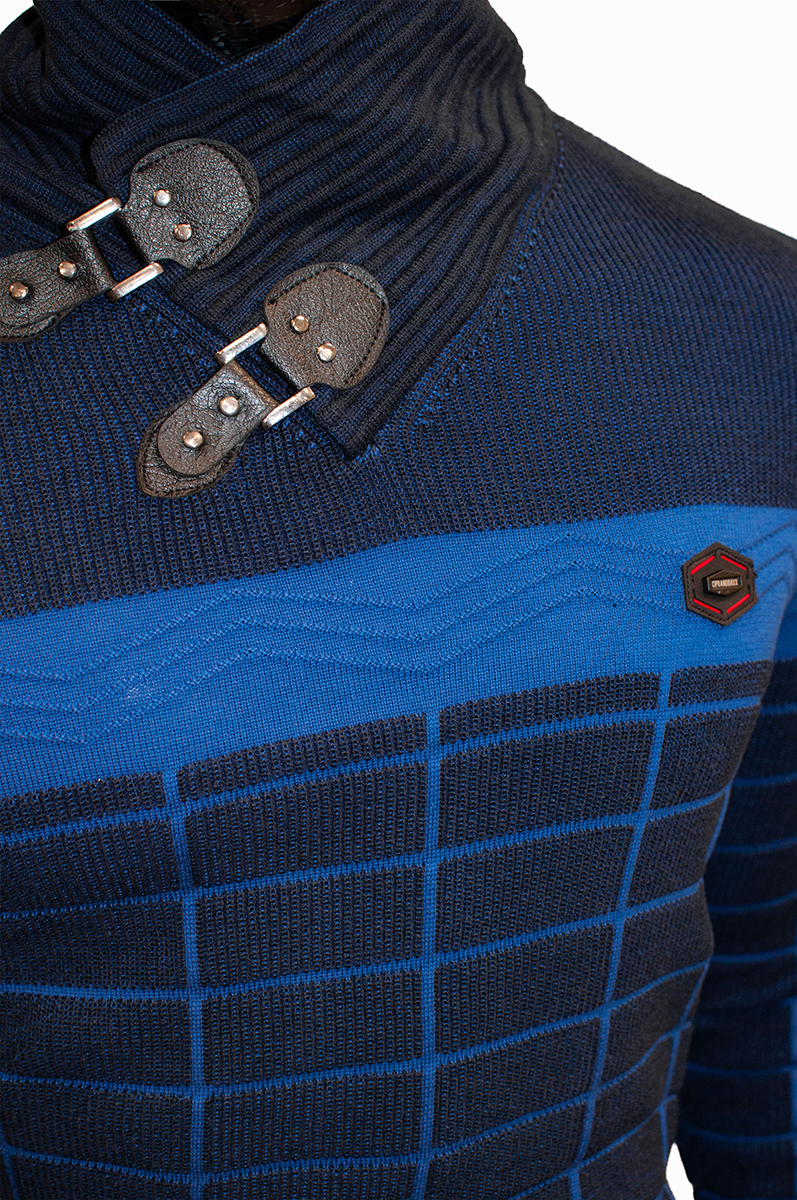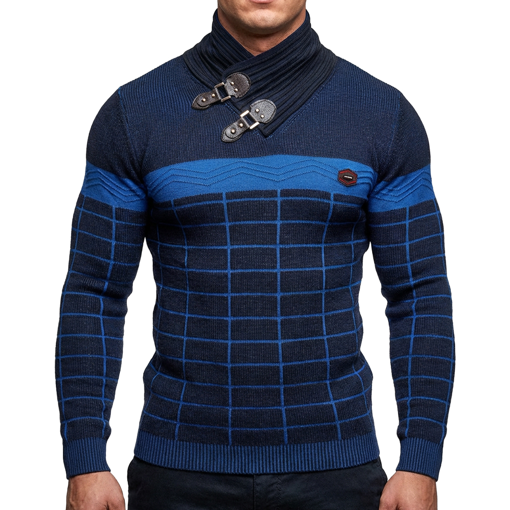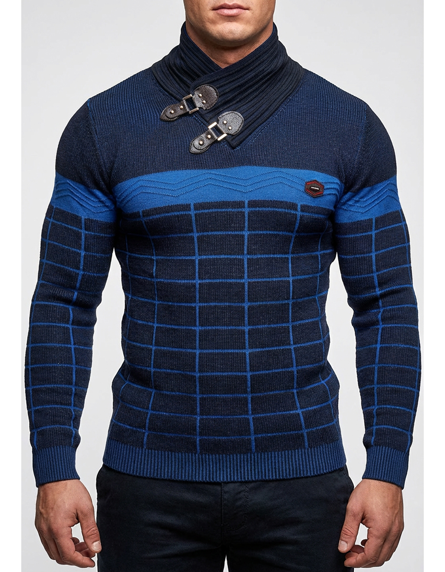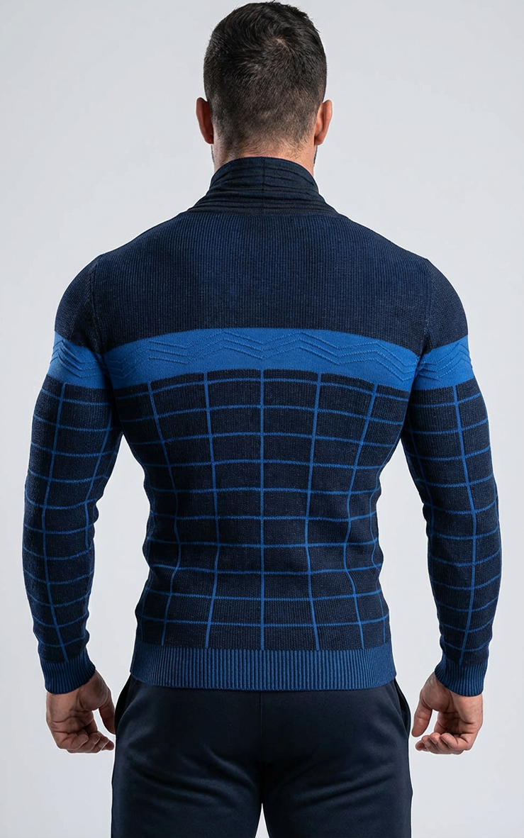 Stylowy męski sweter Cipo & Baxx CP279 z kołnierzem szalowym i modnym wzorem w kratę. Komfortowa dzianina, nowoczesny design, idealny do casualowych stylizacji.