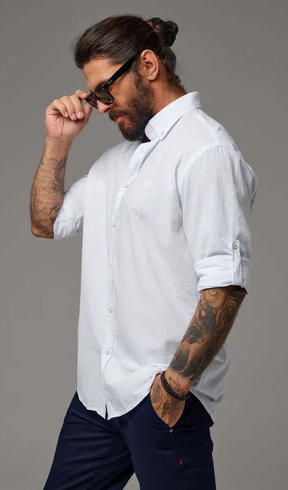 Koszula Cipo Baxx, Gatunek 75 % Bawełna 25 % len , Kolor z metki white, Fason regular