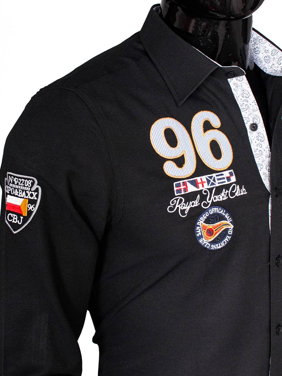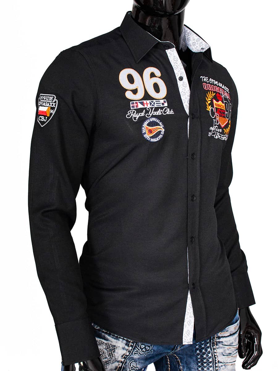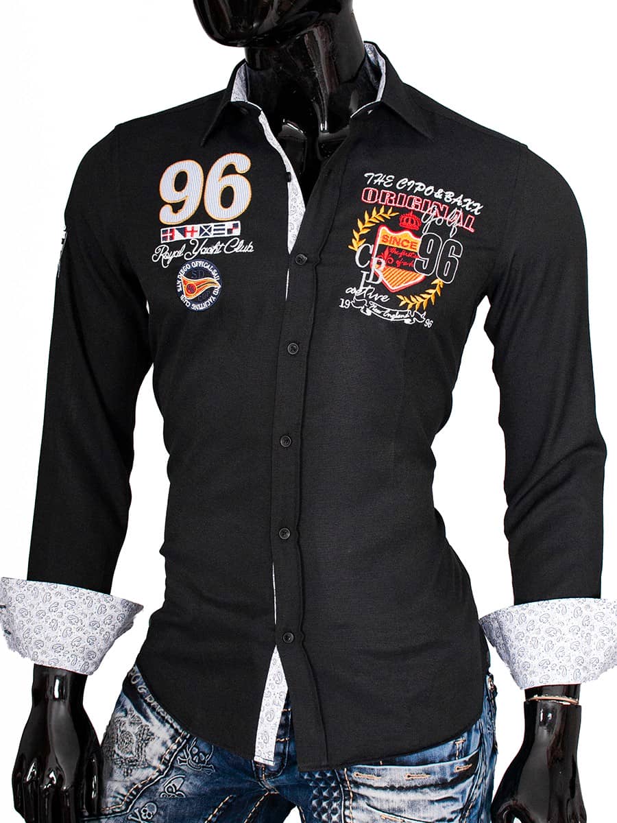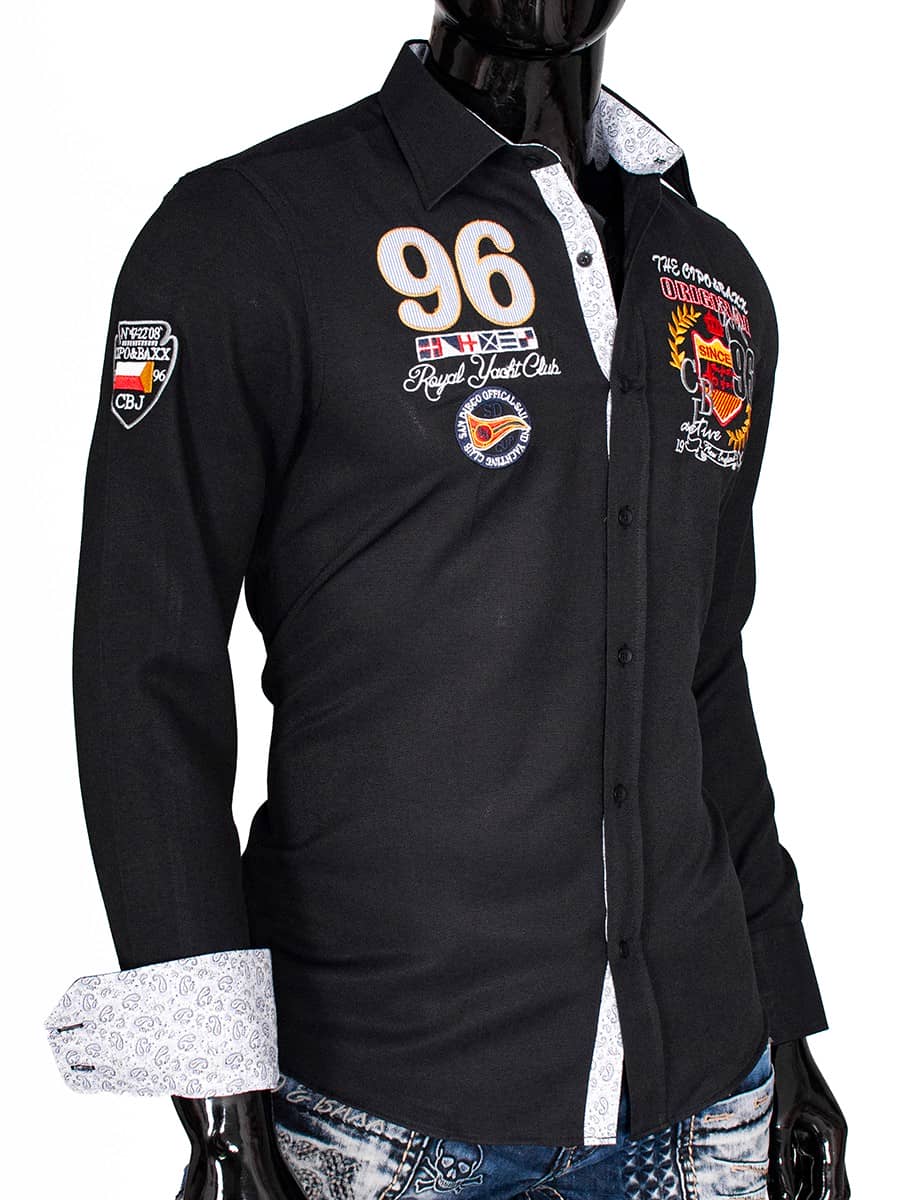 Koszula Cipo Baxx, Gatunek 55 % Bawełna 45 % poliester , Kolor z metki black, Fason Slimfit