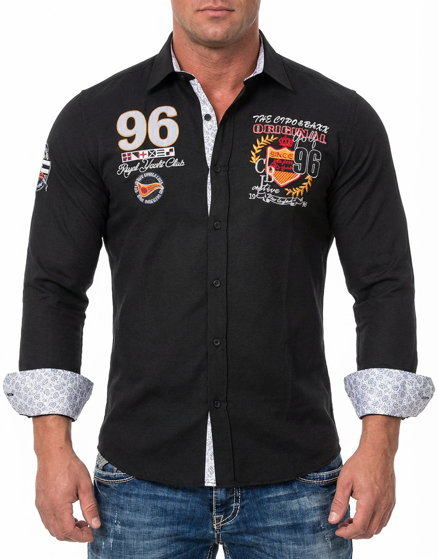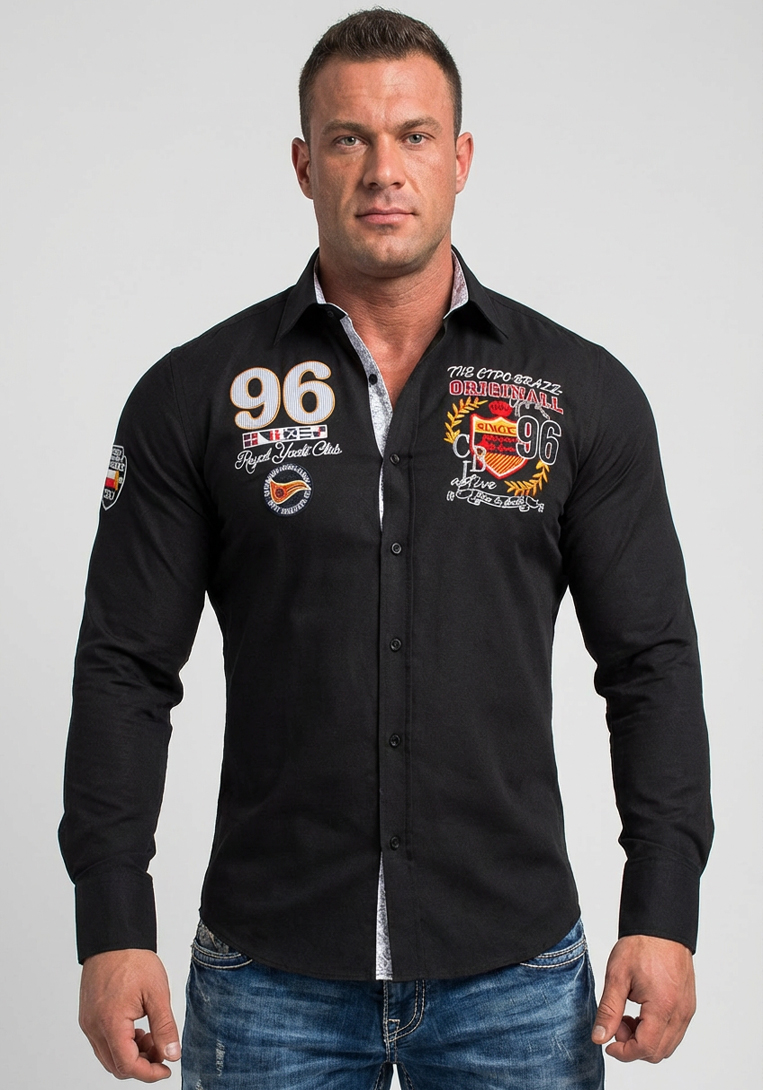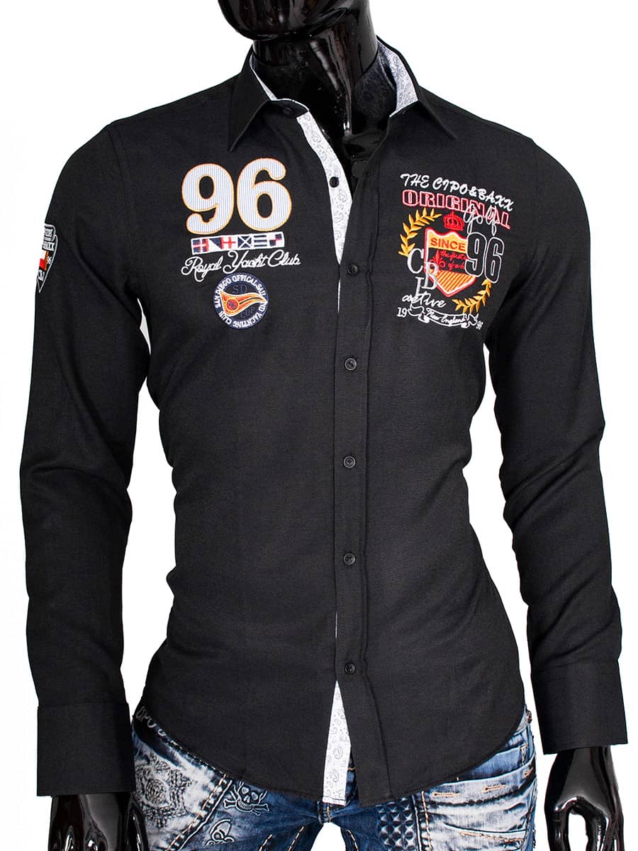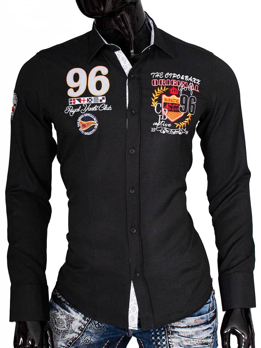 Koszula Cipo Baxx, Gatunek 55 % Bawełna 45 % poliester , Kolor z metki black, Fason Slimfit