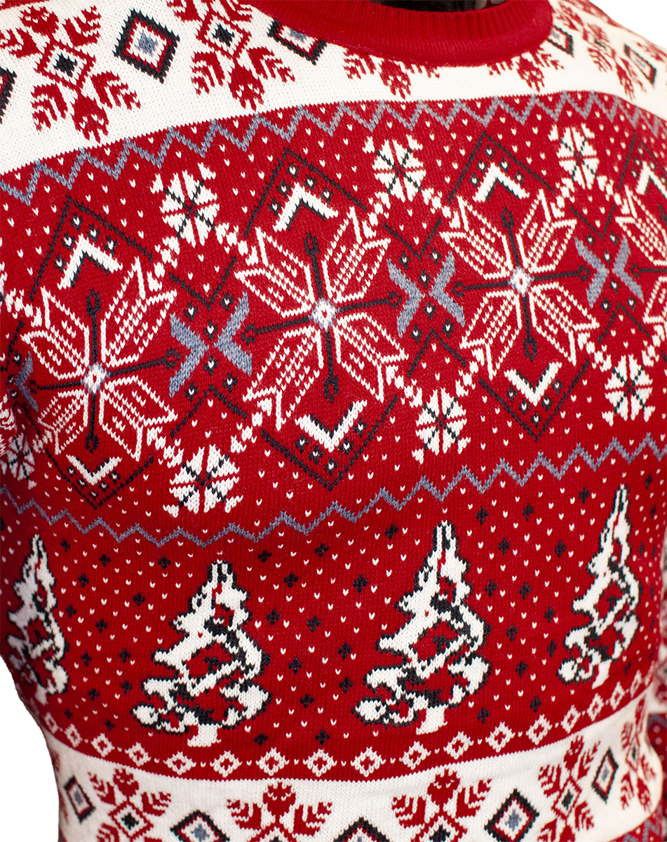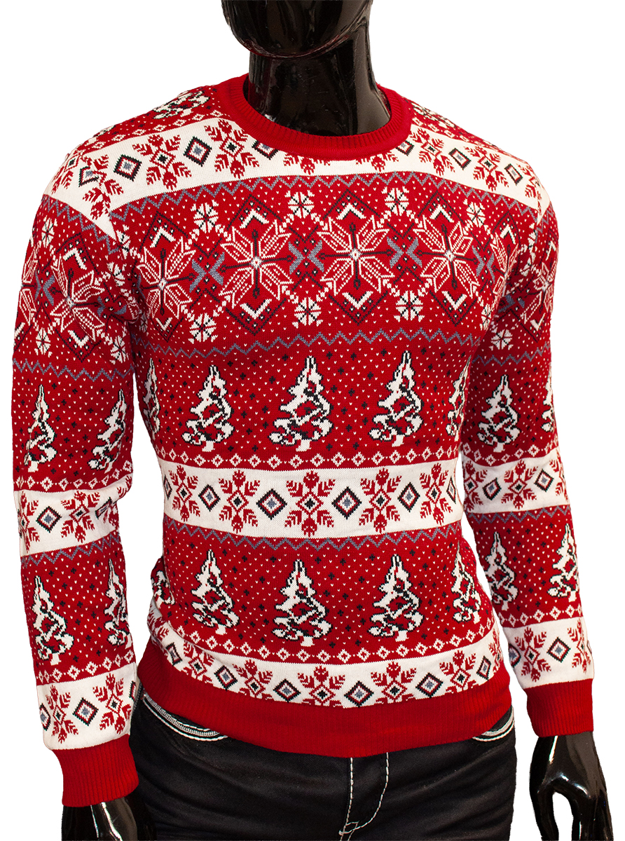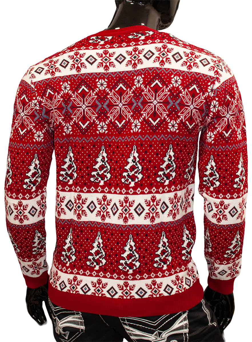Wprowadź się w świąteczny nastrój dzięki wyjątkowemu czerwonymu swetrowi świątecznemu! Wykonany z miękkiej, przyjemnej w dotyku dzianiny, zapewnia ciepło i komfort nawet w najchłodniejsze zimowe dni. Intensywny czerwony kolor idealnie wpisuje się w klimat Bożego Narodzenia, a zdobienia w postaci choinek dodają mu uroku i radosnego charakteru.